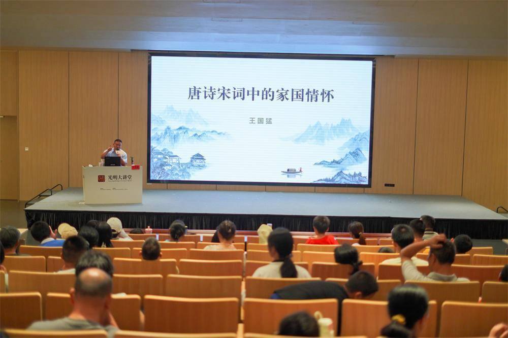 10月1日,“光明大讲堂”特邀深圳市文学艺术界联合会党组成员、专职副主席、作家、知名学者王国猛,以《唐诗宋词中的家国情怀》为主题举行讲座。